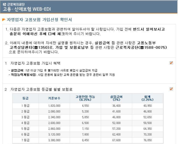 근로복지공단 자영업자 고용보험 가입확인서